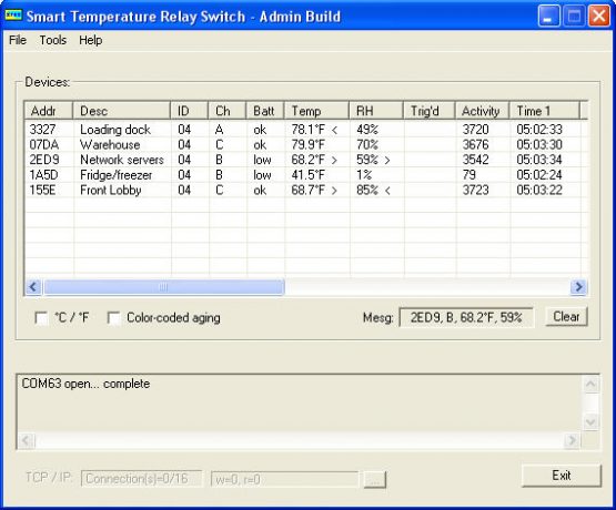 The Smart Temperature Relay Switch (STRS) provides automatic control of user equipment based upon specified environmental trigger conditions (i.e., temperature and/or humidity). Utilizing compatible wireless RF sensors, the system is useful in a vast array of applications. With companion Windows application software and USB adapter cable (included), you may easily configure desired temperature/humidity limits and resulting trigger actions. The Windows application allows for occasional offline configuration setup, or can remain continuously active for online activities including realtime monitoring and/or optional logging. (Compatible with Windows XP, Vista, 7, 8, 10.)